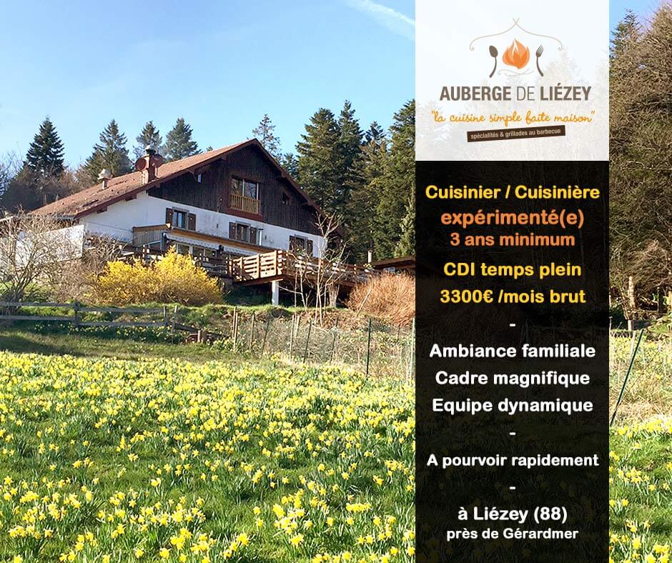 Lieu – Liézey (à proximité de Gérardmer) dans les Vosges – Un cadre magnifique sur les hauteur de Liézey en pleine nature Poste & Missions – Préparation des entrées et plats à base de produit brut – Collaboration étroite avec l’équipe (…)