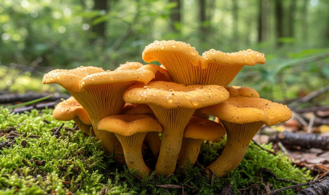 La girolle est plus présente en septembre-octobre, sur les versants ombragés. Jaune d’or, au goût légèrement poivré, elle est incontournable dans la cuisine traditionnelle vosgienne — souvent à la crème, avec des herbes simples.