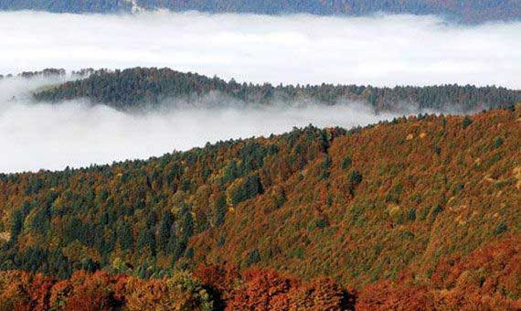 14 virages en épingle avant d’atteindre le village de Wildenstein et la remarquable vallée de la Thur. Le belvédère de RondeTête (alt. 1160 m), permet d’admirer la vallée haut-rhinoise, une vallée cintrée de pentes raides et piquetée par les impressionnants à- pics du massif du Grand Ventron. Peu à peu, en aval de Wildenstein, l’ancien vallon glaciaire s’ouvre alors sur un impressionnant piton granitique qui chapeaute le lac de Kruth-Wildenstein. Mis en eau en 1964, le lac artificiel demeure un des plus grands plans d’eau du massif des Vosges. Il s’étire sur près de 2 km et couvre 81 ha. De nombreuses activités sont proposées et encadrées, comme le canoë-kayak, le bateau à pédales, la plongée, la pêche… Comblant une ancienne dépression d’origine glaciaire, la tourbière de Machais (alt. 983 mètres) est, avec une superficie de 20 hectares, la plus importante du massif des Vosges. Par endroit, le manteau tourbeux atteint 10 mètres d’épaisseur. Au centre du marais, l’eau est libre tandis que les pourtours se trament en une véritable mosaïque de canaux qui divise la tourbière en îlots. Des îlots sur lesquelles une redoutable plante carnivore attend l’insecte imprudent : Le Rossolis à feuilles rondes (Drosera Rotundifolia).
