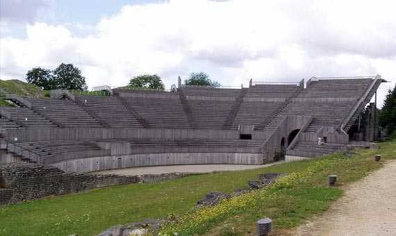 Le site édifié à la fin du 1er siècle qui fut un vaste sanctuaire dédié au dieu guérisseur Apollon Grannus, a livré ses secrets au fur et à mesure des fouilles entreprises depuis 1960. Il subjugue par ses somptueux vestiges, à commencer par l’amphithéâtre, considéré comme l’un des plus vastes monuments de spectacle de l’Empire romain qui bien que démantelé pour servir de carrière de pierres avant d’être sauvegardé, témoigne encore de son immense attractivité auprès des pèlerins de l’époque. L’édifice semi-elliptique, qui devrait atteindre environ 25 mètres de hauteur, est organisé autour d’une arène où se déroulaient des combats de gladiateurs ou d’animaux sauvages et des chasses. Plus de 17 000 spectateurs pouvaient prendre place sur les trois rangées de gradins.