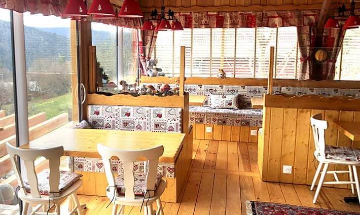 Pour mieux vous accueillir lors de la réouverture de notre restaurant, nous avons créer un espace supplémentaire, toujours type chalet bois mignon, avec vue sur le village et les montagnes…